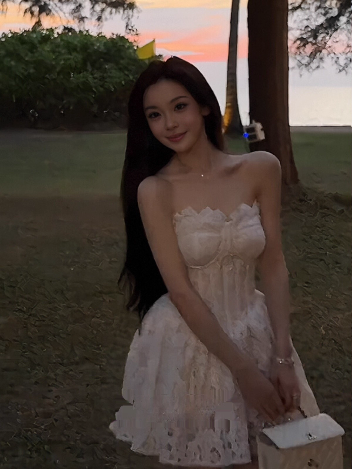Vintage White Lace Strapless A-Line Homecoming Dress Party Dress Cocktail Dress TP4718